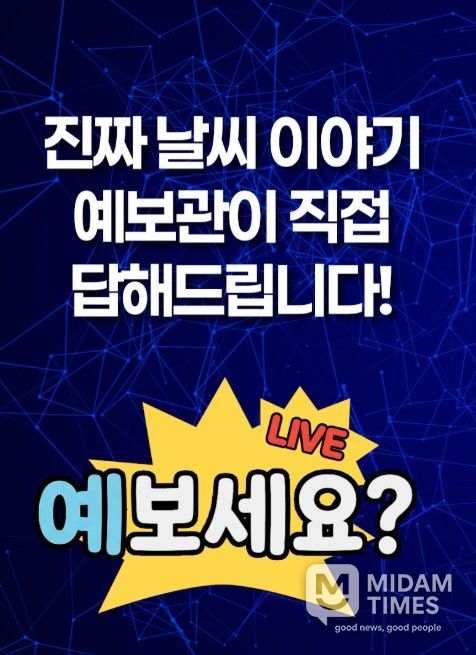 미담타임스 공한별 기자 | 기상청은 예보 소통 전문 유튜브 ‘옙티비(TV)’ 개편을 맞아, 예보관의 유튜브 생방송(라이브) 날씨 상담 프로그램 '예보세요?'를 매월 정기적으로 운영한다.