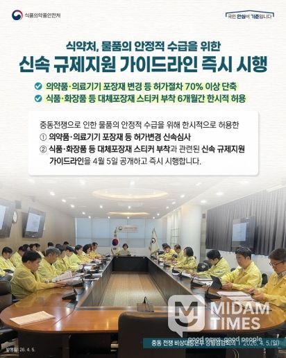 미담타임스 조혜리 기자 | 식약처, 물품의 안정적 수급을 위한 신속 규제지원 가이드라인 즉시 시행
