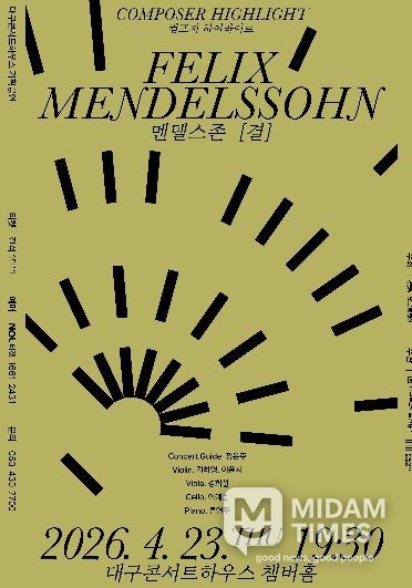 미담타임스 전해찬 기자 | 대구문화예술진흥원 대구콘서트하우스는 4월 23일 오후 7시 30분, 챔버홀에서 ‘컴포저 하이라이트 : 멘델스존, 결’을 개최한다.