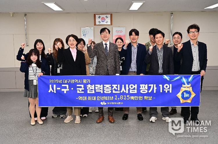 미담타임스 전해찬 기자 | 대구 동구청은 대구시가 실시한 ‘2025년 시-구·군 협력증진사업’ 평가에서 1위를 수상해, 18억1천500만원의 재정인센티브를 받게됐다.