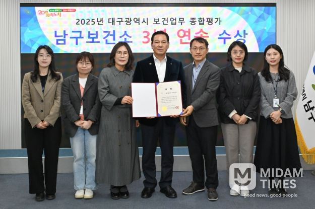 미담타임스 전해찬 기자 | 대구 남구는 지난 7일 보건의 날 기념 행사에서 '대구광역시 보건업무 종합평가'결과, ‘3년 연속’으로 대구광역시장상을 수상하는 성과를 거두어 보건행정의 우수성을 다시 한번 입증했다고 밝혔다.