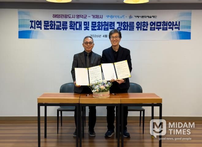 이날 협약식에는 이승훈 영덕문화관광재단 상임이사와 김준성 거제시문화예술재단 상임이사를 비롯한 양 기관 관계자들이 참석해 협력 방안과 향후 추진 방향을 공유했다.