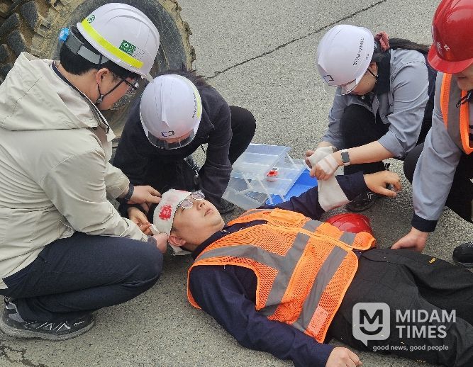 환경자원사업처는 매립 현장 내 중장비 및 반입 차량 간 충돌 사고를 사전에 예방하고, 사고 발생 시 신속한 구호 조치 역량을 강화하기 위해 실전 모의훈련을 진행했다.