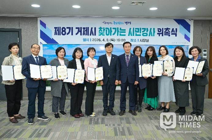 미담타임스 황명수 기자 | 거제시는 지난 9일 거제시청 시장실에서 '제8기 거제시 찾아가는 시민강사 위촉식'을 개최했다.