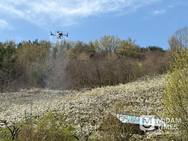 특히 농촌진흥청에서 개발한 기계화 수분용 현탁액 제조 기술을 현대적 드론 살포 시스템에 적용해 정밀하게 진행했다.