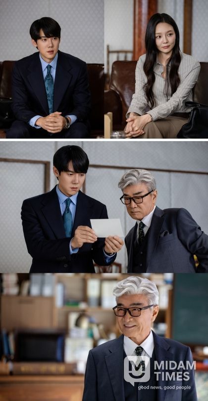 이 가운데 오늘(9일) 공개된 스틸컷에는 두 변호사가 신이랑 법률사무소에서 포착돼 이목을 집중시킨다. 대형 로펌 ‘태백’을 나온 한나현이 신이랑의 파트너로 새 출발한 예감을 들게 하는 장면이다. 여기에 두 사람이 함께 바라보고 있는 사람이 눈길을 끈다. 다름 아닌 이덕화가 중후한 수트 차림으로 범접할 수 없는 아우라를 뿜어내고 있기 때문. 신이랑과 함께 의문의 사진을 뚫어지게 응시하는 그가 과연 산 사람으로 사건을 의뢰하러 온 것인지, 아니면 신이랑의 눈에만 보이는 새로운 망자인지에 대한 궁금증이 폭발하고 있다.
