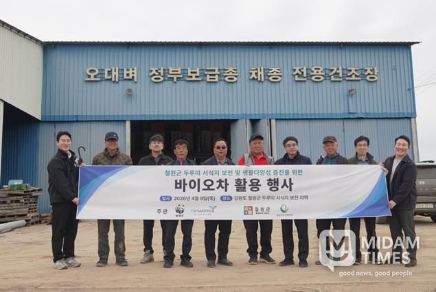미담타임스 김준완 기자 | 4월 9일 오전 10시 30분‘철원 두루미 서식지 보전을 위한 바이오차 투입 시연 현장’이 성공적으로 마무리됐다.