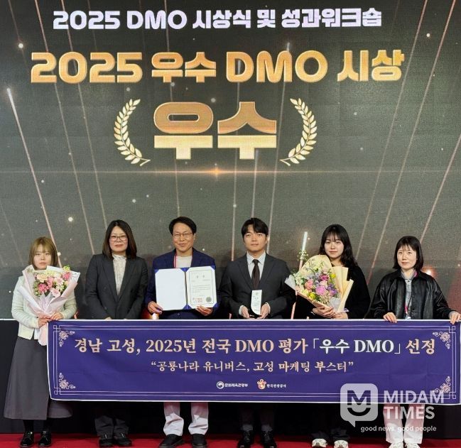 미담타임스 황명수 기자 | 경남 고성문화관광재단이 지난 8일 문화체육관광부와 한국관광공사가 주관한 2025년 지역관광추진조직(DMO) 육성 지원 사업 최종 성과 평가에서 우수DMO 기관으로 선정됐다.