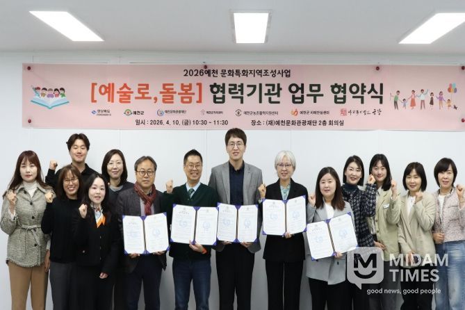 미담타임스 김준완 기자 | 예천문화관광재단은 10일 예천군 문화회관 2층 회의실에서 ‘2026 예천 문화특화지역조성사업 '예술로 돌봄'’의 원활한 추진을 위해 지역 내 복지기관과 업무협약(MOU)을 체결했다.