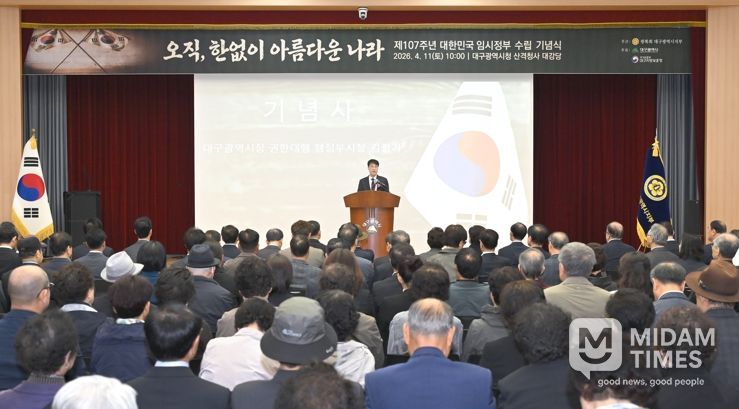 미담타임스 전해찬 기자 | 대구광역시는 대한민국 임시정부 수립 제107주년을 맞아 4월 11일 오전 10시, 시청 산격청사 대강당에서 기념식을 거행했다.