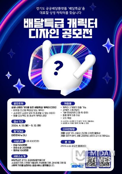 미담타임스 정주환 기자 | 경기도주식회사가 오는 5월 12일까지 공공배달앱 배달특급의 캐릭터 디자인을 공개 모집한다.