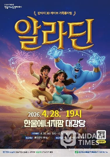 미담타임스 김준완 기자 | 한국수력원자력(주) 한울원자력본부는 4월 28일 19시 한울에너지팜 대강당에서 제2회 ‘한울다누림컬쳐데이’ 아동 뮤지컬 '알라딘'을 개최한다.
