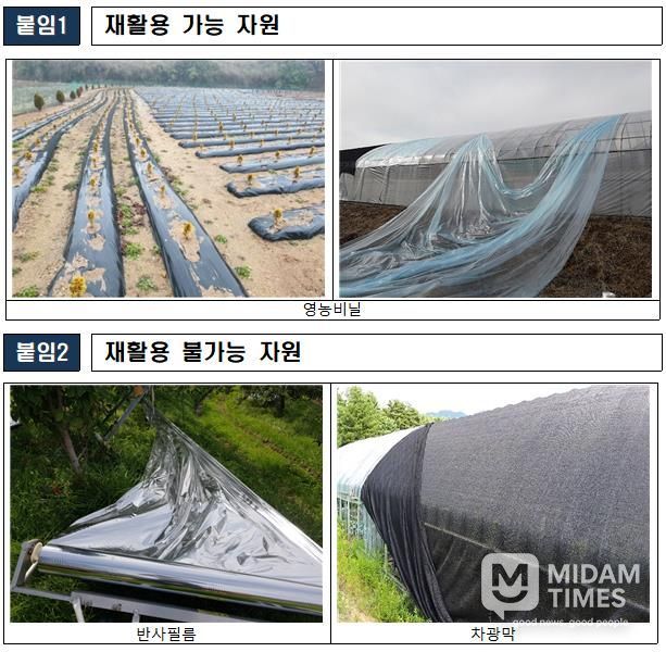 다만, 반사필름, 차광막, 부직포, 곤포사일리지 필름, 비료포대 등은 재활용이 불가능한 자원으로 이번 수거 대상에서 제외되므로 배출 시 주의가 필요하다.