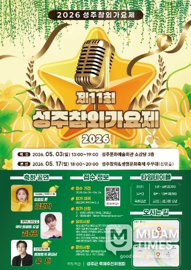 성주군 관계자는 “성주참외가요제는 전국의 다양한 목소리가 모여 하나의 무대를 완성하는 열린 축제”라며 “끼와 열정을 가진 많은 분들이 성주에서 꿈을 펼칠 수 있도록 적극적인 참여를 바란다”고 밝혔다. 한편, 성주참외가요제는 지역 문화와 관광이 결합된 참여형 축제로, 매년 많은 방문객이 찾는 성주참외&생명문화축제의 대미를 장식하며 큰 호응을 얻고 있다.
