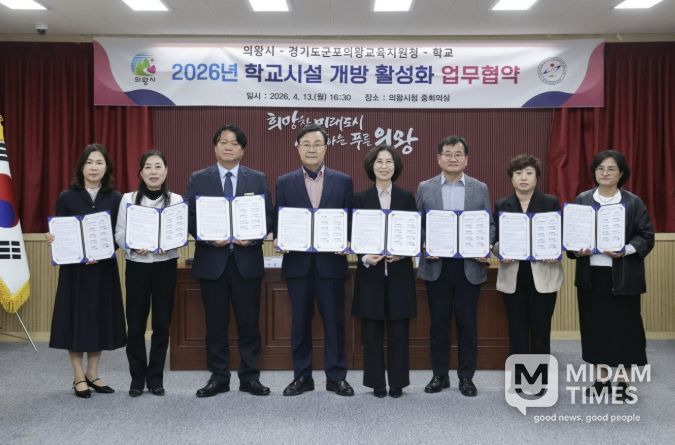 미담타임스 정주환 기자 | 의왕시가 4월 13일 시청 중회의실에서 군포의왕교육지원청 및 관내 8개 학교와 ‘학교시설 개방 활성화 추가 업무협약’을 체결했다.