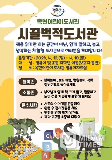 미담타임스 김준완 기자 | 옥현어린이도서관은 도서관의 날·도서관 주간을 맞아 오는 18일까지 영유아자료실에서 독서와 놀이를 결합한 참여형 프로그램 ‘시끌벅적 도서관’을 운영하고 있다고 15일 밝혔다.