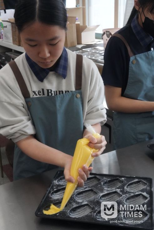 이날 첫 수업에 참여한 중학생들은 전문 강사의 지도 아래 디저트 제작의 기초 공정과 실습 교육에 참여하며 진로 탐색의 폭을 넓히는 시간을 가졌다.