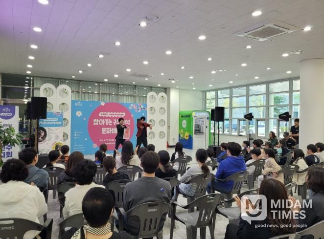 미담타임스 황명수 기자 | 진주시는 지난 15일 충무공동 복합혁신센터에서 ‘구석구석 문화가 있는 날’ 4월 3주 차(3회차) 프로그램으로 『찾아가는 문화배달』 행사를 개최했다.