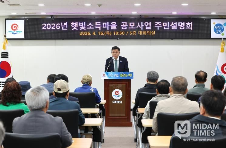 부안군은 지난 16일 군청 대회의실에서 읍·면 이장협의회장, 주민자치위원장, 마을대표 등 100여 명이 참석한 가운데 정부의 ‘2026년 햇빛소득마을 공모사업 주민설명회’를 개최했다고 밝혔다.