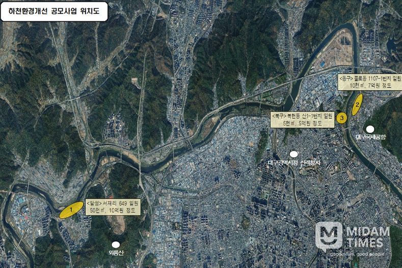 대상지는 금호강 하천구역 내 ▲달성군 서재·세천 ▲북구 복현동 ▲동구 불로동 일원 총 3개소다.