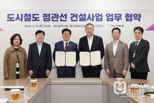 미담타임스 남혜영 기자 | 부산시는 16일 오후 2시 시청 국제의전실에서 기장군과 '도시철도 정관선 건설사업 기본 협약'을 체결하고, 사업의 원활한 추진을 위한 상호 협력체계를 구축한다고 밝혔다.