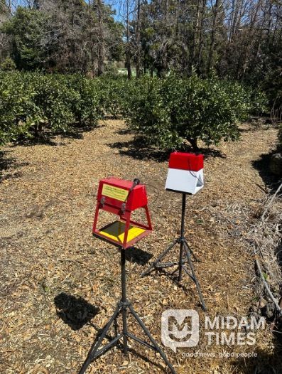 디지털트랩은 제주 전역 노지 감귤원과 밭작물 재배지 82개 지점에 총 195대가 설치·운영되며, 11월 말까지 해충 발생을 집중 모니터링한다.