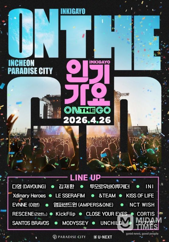 오는 4월 26일(일) 인천 파라다이스시티에서 개최되는 ‘인기가요 ON THE GO’는 SBS 대표 음악 프로그램 ‘인기가요’의 스페셜 공연 프로젝트로, 기존 스튜디오 중심의 음악 방송을 넘어 팬들이 있는 곳으로 직접 찾아가는 콘셉트로 기획됐다. 생방송 현장의 에너지와 공연의 몰입감을 결합한 새로운 형태의 K-POP 공연으로, 아티스트와 관객이 더욱 가까이 호흡하는 특별한 경험을 선사할 예정이다.