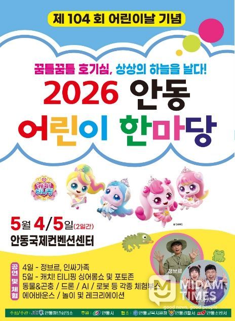 미담타임스 김준완 기자 | 안동시와 안동청년회의소는 제104회 어린이날을 맞아, 5월 4일부터 5월 5일까지 이틀간 안동국제컨벤션센터에서 ‘2026 안동 어린이 한마당’을 개최한다고 밝혔다.