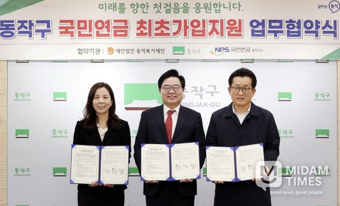 구는 지난 16일 국민연금공단 동작지사, 동작복지재단과 ‘저소득 청년 국민연금 임의가입 지원 업무협약’을 체결하고, 관내 기초생활수급자 가구 중 만 18세 이상 27세 미만 청년을 대상으로 국민연금 임의가입 후 최초 3개월분 보험료를 지원한다.