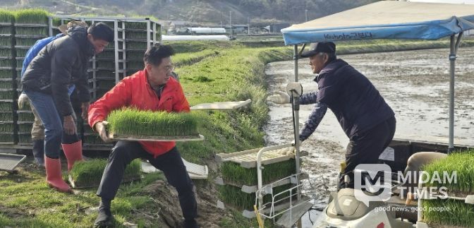 미담타임스 정주환 기자 | 양평군은 지난 15일 지평면 수곡리에 위치한 전경복 농가에서 올해 첫 모내기를 실시했다고 밝혔다.