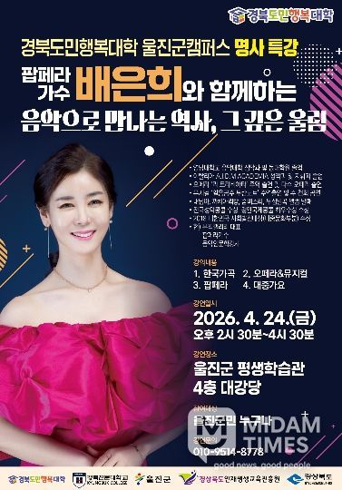 미담타임스 김준완 기자 | 울진군은 오는 4월 24일 울진군 평생학습관에서 ’경북도민행복대학 울진군캠퍼스 명사특강‘ 을 개최한다.