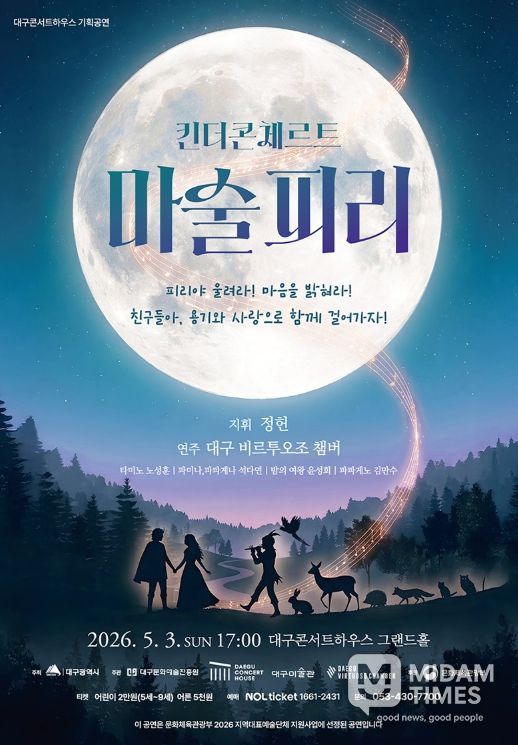 미담타임스 전해찬 기자 | 대구문화예술진흥원 대구콘서트하우스는 5월 3일 오후 5시 그랜드홀에서 어린이 참여형 음악 공연 '킨더콘체르트: 마술피리'를 개최한다.