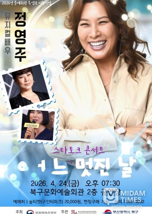 미담타임스 남혜영 기자 | 부산 북구문화예술회관은 오는 4월 24일 금요일 오후 7시 30분, ‘달달스테이지’ 4월 기획공연으로 뮤지컬 배우 정영주와 함께하는 토크 콘서트 ‘어느 멋진 날’을 선보인다.