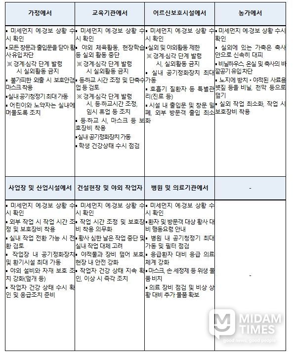 기후에너지환경부는 황사 위기경보 ‘관심’ 단계가 발령됨에 따라 관계 기관과 해당 지방정부에 곧바로 상황을 전파하고, ‘황사 재난 안내서(매뉴얼)’에 따라 철저하게 대응할 것을 요청했다.