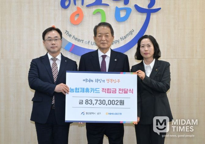 미담타임스 김준완 기자 | NH농협은행 울산본부는 21일 남구청을 찾아 제휴카드 적립기금 8,300여 만 원을 전달했다.