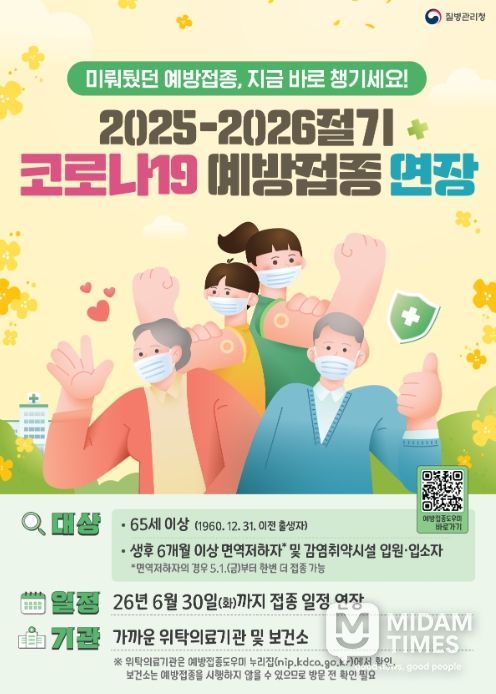 이번 연장 조치는 고위험군인 65세 이상 어르신, 생후 6개월 이상 면역저하자, 감염 취약시설 입원‧입소자의 미접종 비율이 여전히 높은 상황을 고려해 결정됐다.