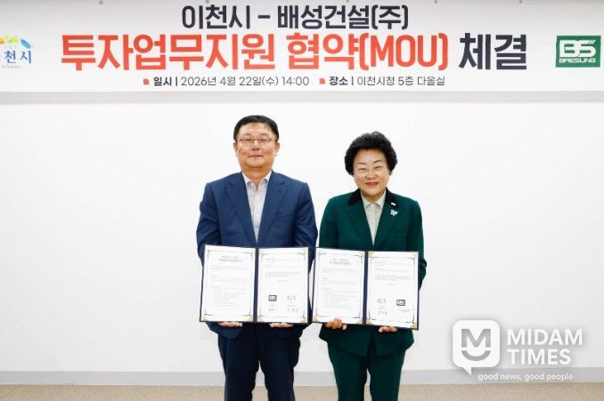 미담타임스 정주환 기자 | 이천시가 22일 배성건설㈜와 203억 원 규모의 투자업무지원협약을 체결하고, 기업의 신규 공장 신설을 본격 지원한다.
