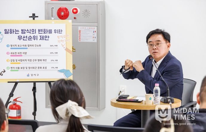 미담타임스 정주환 기자 | 진교훈 강서구청장이 22일 수요일 주요 계약‧인허가 등 부패 취약분야 부서 직원들과 청렴 소통 간담회를 가졌다.