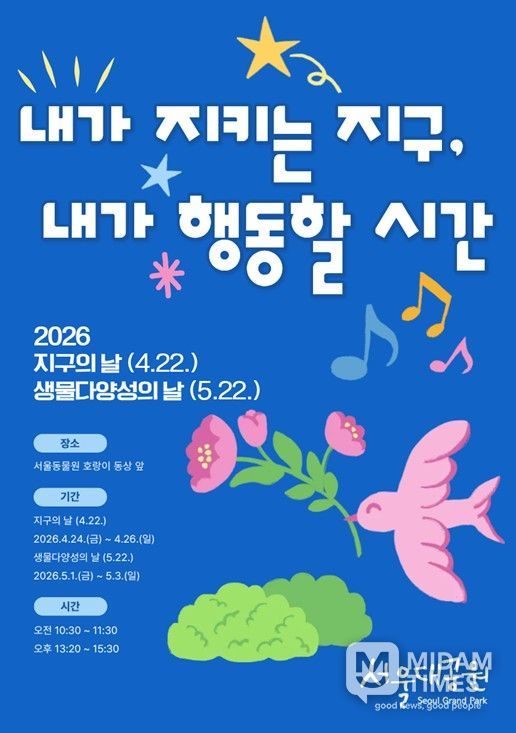 미담타임스 김준완 기자 | 서울대공원 서울동물원은 ‘지구의 날(4월 22일)’과 ‘생물다양성의 날(5월 22일)’을 기념하여, 시민들이 환경보전의 가치를 직접 체험하고 배울 수 있는 특별 생태교육 행사를 개최한다고 밝혔다.