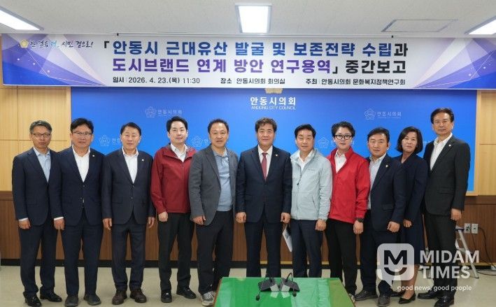 미담타임스 김준완 기자 | 안동시의회 문화복지정책연구회는 23일 안동시의회 회의실에서‘안동시 근대유산 발굴 및 보존 전략 수립과 도시브랜드 연계 방안 연구용역’중간보고회를 개최하고, 연구 추진 현황을 점검하는 한편 향후 정책 방향에 대해 논의했다.