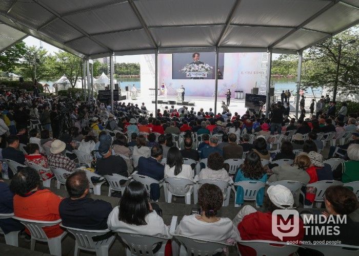 행사는 개회선언과 고양시립합창단의 축하공연을 시작으로 개회사, 오프닝 세리머니(버튼 이벤트·LED 개화 영상), 가수 김다현의 축하무대가 이어져 행사를 분위기를 띄웠다.