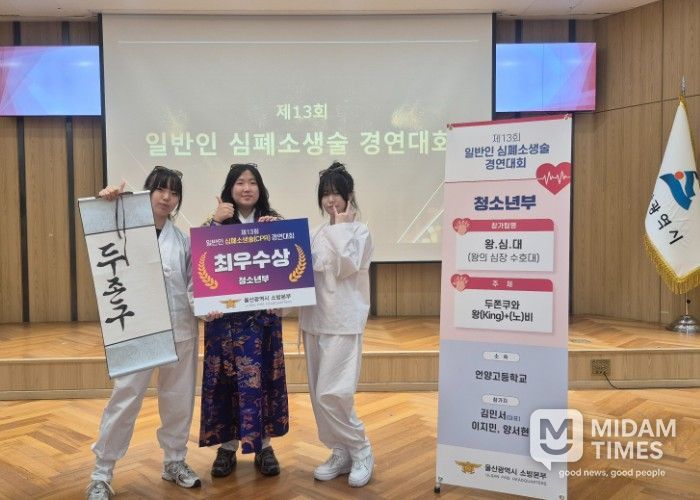 이번 대회는 청소년부와 대학·일반부 등 총 11개 팀이 참가한 가운데, 서부청소년수련관 청소년팀(언양고등학교 김민서, 이지민, 경의고등학교 양서현)은 최근 흥행한 영화 설정을 활용한 시나리오를 바탕으로 일상생활에서 발생할 수 있는 응급상황을 설정하고, 신고부터 심폐소생술 시행까지 현실감 있게 재현했다. 특히 장비 점수뿐만 아니라 무대 표현에서 심사위원들로부터 완성도 면에서 매우 높은 점수를 받았다.