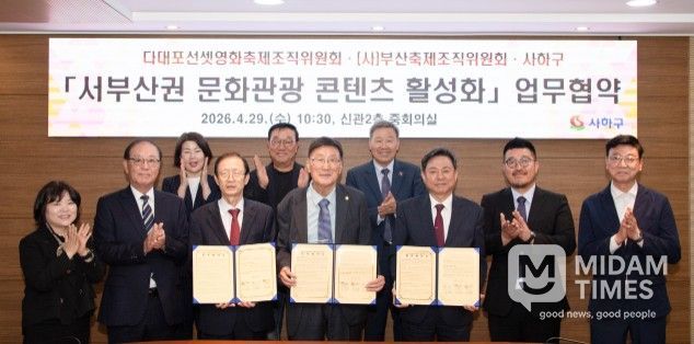 미담타임스 남혜영 기자 | 부산 사하구는 서부산권에서 개최되는 축제 및 문화 행사를 중심으로 지역 문화관광 콘텐츠의 발전 가능성을 함께 모색하고 지속가능한 협력 기반을 마련하기 위해 4월 29일 다대포선셋영화축제조직위원회, 부산축제조직위원회와 업무협약을 체결했다고 밝혔다.