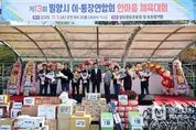 미담타임스 김교환 기자 | 밀양시 이·통장연합회는 5일 밀양종합운동장 보조경기장에서 16개 읍·면·동의 이·통장 340여 명이 참여한 가운데 ‘제13회 밀양시 이·통장연합회 한마음 체육대회’를 성황리에 개최했다고 밝혔다. 개회식에는 안병구 밀양시장, 허홍 밀양시의회 의장, 시의원, 기관·단체장 등 많은 내빈이 참석해 축하와 격려의 메시지를 전했다. 이날 행사는 개회식을 시작으로 모범 이·통장 표창 수여, 체육대회, 축하공연, 노래자랑 등 다채로운 프로그램이 진행되며 화합과 소통의 장이 됐다. 박정규 연합회장은 “한마음 체육대회는 주민을 위해 책임감 있게 일하는 이·통장들을 격려하고, 서로가 더욱 화합하는 계기를 갖기 위한 자리”라며 “오늘의 주인공은 이·통장들이며, 오늘을 계기로 더욱 활발히 소통하고 결속력을 다져 행정의 최일선에서 시민을 위한 봉사자로서의 역할을 충실히 하겠다”라고 말했다. 안병구 시장은 “행정의 최일선에서 주민들을 살피고 시정에 적극적으로 협조해 주셔서 감사드리며, 밀양이 빛나고 시민이 행복한 밀양을 위해 앞으로도 우리 밀양시와 시민을 이어주는 가교로서 시정 추진에 든든한 지원군