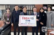미담타임스 김교환 기자 | 사내 헌혈 캠페인 및 자발적 기증을 통해 모은 헌혈증서 107장 경남혈액원에 전달 (재)김해문화관광재단(대표 최석철)은 지난 2월 11일, 지역사회의 혈액 수급 안정과 생명 나눔 문화 확산을 위해 임직원들이 자발적으로 모은 헌혈증서 107장을 대한적십자사 경남혈액원에 전달했다고 밝혔다. 재단은 지난 1월 26일 진행된 「사랑의 헌혈」 행사와 그간 진행해 온 상시 기부 캠페인을 통해 총 107장의 헌혈증서를 모았다. 이는 당초 목표했던 100장을 초과 달성한 수치로, 사내 헌혈 행사를 통해 모인 증서와 임직원들이 개인적으로 소지하고 있던 증서를 자발적으로 전달하며 총 107장이라는 뜻깊은 숫자를 기록했다. 전달식은 김해문화의전당에서, 김해문화관광재단 최석철 대표이사와 대한적십자사 경남혈액원 이정우 원장 등이 참석한 가운데 진행됐다. 기부된 헌혈증서는 향후 지역 내 수혈이 필요한 환우 및 긴급 혈액 수급 상황 등에 소중하게 사용될 예정이다. 김해문화관광재단 김봉조 경영기획본부장은 “임직원들의 적극적인 참여 덕분에 100장이 넘는 소중한 마음을 모을 수 있었다”고