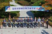 미담타임스 김준완 기자 | 김천시는 대광동 873-3 일원에 장애인 전용 9홀 규모의 파크골프장 조성을 완료하고, 10월 31일 준공식을 개최했다. 이날 준공식에는 최순고 부시장, 박선하 도의원, 최병근 도의원, 관내 장애인단체장과 장애인파크골프 동호인 등 200여 명이 참석해 축하했다. 행사는 김천시 중증장애인자립지원센터의 발달장애인 공연팀 ‘도토리 앙상블’의 축하공연으로 막을 열었으며, 경과보고, 유공자 공로패 전달, 기념사, 축사, 테이프 커팅, 시타 순으로 진행됐다. 김천시 장애인파크골프장은 장애인 체육인프라 확충과 여가활동 활성화를 위해 총 10억 원의 예산을 투입해 기존 환경공원 부지를 정비하여 조성됐다. 총 9,922㎡ 면적에 9홀 규모로 설계됐으며, 접근로, 파크골프장 곳곳의 쉼터와 편의시설 등 장애인 이용자의 안전과 편의를 최우선으로 고려한 설계가 적용됐다. 특히 일반적으로 하천변에 조성되는 파크골프장과 달리, 김천시장애인파크골프장은 장애인복지관과 장애인회관 등이 인접해 있으며, 푸른 수목이 어우러진 환경공원 내에 위치해 자연속에서 안전하고 쾌적하게 즐길 수 있는 생활체육공간으로 조