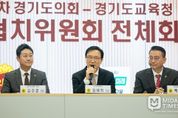 미담타임스 정주환 기자 | 경기도교육청과 경기도의회가 2026년도 본예산 편성 과정에서 총 2,000억 원 규모의 협치 예산을 공동으로 추진하기로 합의하며 교육 협력의 새로운 전기를 열었다. 경기도교육청은 5일 도의회 예담채에서 ‘경기도의회-경기도교육청 제1차 여야정 협치위원회 전체회의’를 개최했다. 이번 회의는 도의회와 교육청이 함께 2026년도 협치 예산 합의문에 서명하며 지속 가능한 교육정책 협력체계를 공고히 하고자 마련됐다. 공동의장 3인은 합의문에 서명하며 교육청과 도의회 간 협치의지를 공식화했다. 합의를 통해 ▲현장 중심 학교운영 ▲교육행정 개선 ▲미래교육 전환 ▲교육환경 개선 ▲맞춤형 교육확대 등 5대 분야 총 2,000억 원 규모 협치 예산을 공동 추진하기로 했다. 임태희 교육감은 인사 말씀을 통해 “여야정 협의가 늘 화두로 떠오르는데 실제로 결실은 많치 않다”며 “이런 점에서 대단히 성숙하고 건강한 도정의 협치 모습을 보이는 현장이라고 생각한다”고 말했다. 이어 “최종적으로 학생과 교육 현장의 학부모, 교직원들을 위해 앞으로 후속 조치를 함께 해주시길 바란다