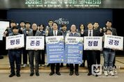 미담타임스 정주환 기자 | 화성특례시와 전국공무원노동조합 화성시지부가 3일 시청 대회의실에서 ‘2025년 하반기 공무원 노사협의회’를 개최했다. 이날 협의회에는 정명근 화성특례시장과 최태성 전국공무원노동조합 화성시지부장을 비롯한 시 집행부, 노조 간부 등 18명이 자리해, 신뢰와 존중을 바탕으로 한 건강한 조직문화 조성을 위해 협력하기로 했다. 협의회는 ▲베스트 간부공무원에 대한 시상 ▲직장 내 괴롭힘 설문조사 결과보고 ▲노사협력 활동 제안 ▲부서별 노사협의 안건 논의 순으로 진행됐다. 특히, 노사 양측은 직장 내 괴롭힘 실태와 조직문화 개선 방안을 중심으로 진솔한 의견을 나누며, 상호 존중과 소통이 살아 있는 공직문화 확립을 위한 다양한 방안을 모색했다. 또한, ‘화성특례시 모두의 약속’ 퍼포먼스를 통해 청렴과 공정, 평등의 가치를 함께 되새기며 건강한 조직문화 정착을 위한 노사 간 의지를 다졌다. 정명근 화성특례시장은 “건강한 조직문화는 노사 모두가 함께 만들어가는 가치”라며 “시 또한 열린 자세로 소통하며 시와 노동조합이 서로 신뢰를 더욱 굳건히 해 함께 성장하는 공직사회를 만들어