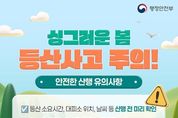 미담타임스 조혜리 기자 | ■ 싱그러운 봄 등산사고 주의! · 등산 소요시간, 대피소 위치, 날씨 등 산행 전 미리 확인 · 가벼운 몸풀기 및 체력에 맞는 등산로 선택 · 산행 중 몸에 무리가 오면 즉시 하산 · 반드시 지정된 등산로 이용 · 출입이 통제된 위험 구역 진입 금지 · 체온 유지를 위한 여벌의 옷이나 보온용품 챙기기