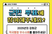 미담타임스 정주환 기자 | 강화군은 오는 10월 27일부터 10월 31일까지 5일간 강화군 홈페이지를 통해 ‘2025년 강화군 적극행정 우수사례 군민 투표’를 실시한다고 밝혔다. 이번 투표는 행정에 대한 군민의 체감도와 참여를 높이기 위해 마련된 것으로, 강화군 각 부서에서 제출한 18건의 적극행정 우수사례 중 1차 심사를 통해 선정된 8건을 대상으로 군민이 직접 우수사례를 선택할 수 있다. 투표는 강화군청 홈페이지 ‘적극행정 우수사례 투표’ 배너를 통해 간편하게 참여할 수 있으며, 투표 결과는 군 내부 심사 점수와 합산하여 ‘적극행정 우수사례 및 우수공무원’ 선정에 반영될 예정이다. 강화군은 이번 군민 투표를 통해 현장 중심의 적극행정 성과를 널리 공유하고, 공직자의 적극적인 업무 추진 문화를 확산시켜 나간다는 방침이다. 박용철 군수는 “군민이 체감할 수 있는 적극 행정은 진정한 소통의 출발점”이라며 “앞으로도 창의적이고 능동적인 공직문화가 정착될 수 있도록 적극행정을 지속적으로 추진하겠다”고 밝혔다.